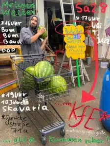 Wir feiern im KfE* einen runden Geburtstag & alle sind zum Ernte-Punk-Fest eingeladen! Nebenbei starten wir mit Körperteil-Kopierer, Lack, Spray & Tusche in den Kommunal-Malkampf der Ribisl-Partie. Kommt und lasst Euch reinstrudeln!
