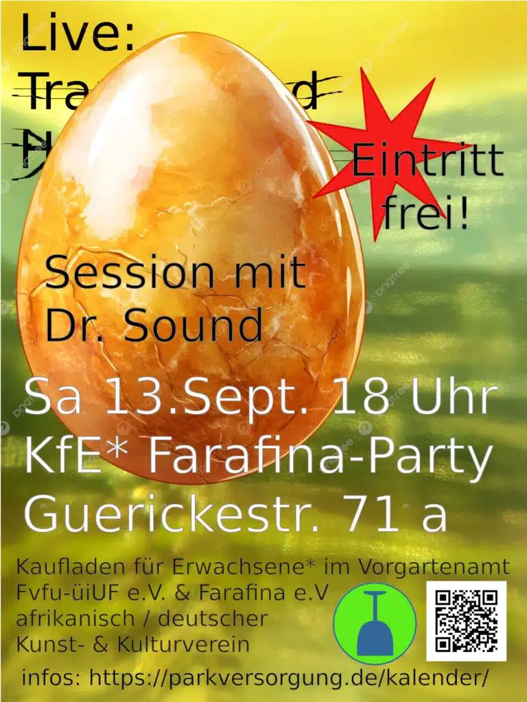 Sa 13. September 18 Uhr: Farafina-Party & Session mit Dr. Sound