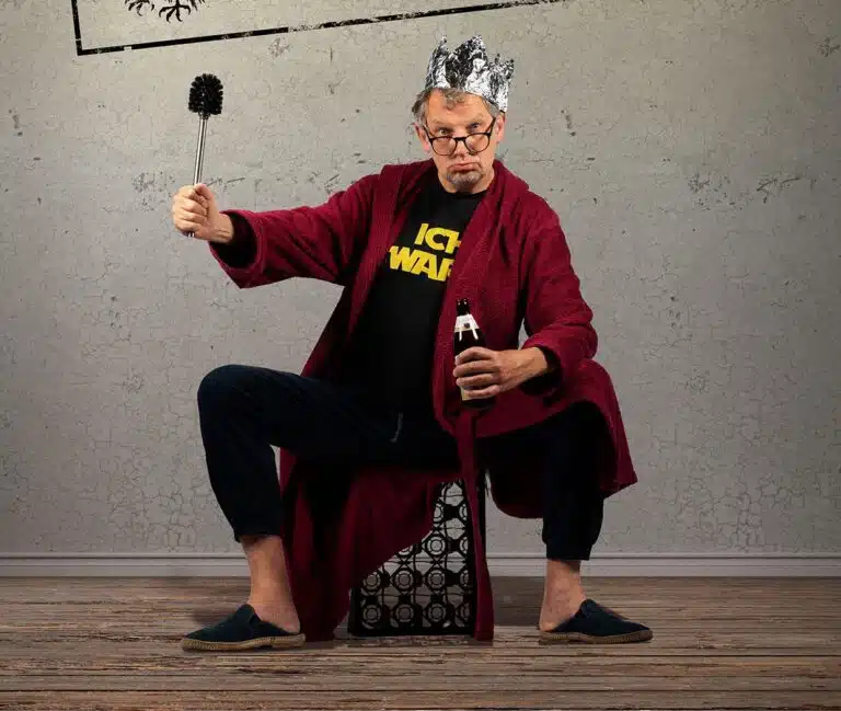 Ich bin das Volk Ein Regierungsprogramm von in Groebner Verfassung Der kleine Mann auf der Straße, das ist immer noch ein Mensch wie Du und ich. Fragen wir ihn also: Warum ist der kleine Mann eigentlich immer auf der Straße? Hat er kein zu Hause? Und wie klein ist er genau? Strebt das Volk eigentlich immer nach Größe, weil es aus lauter kleinen Männern besteht? Was will das Volk eigentlich? Weiß es das überhaupt? Oder was es ist? Gibt’s neben dem Volkswillen auch ein Volkswissen? Und was sagt man dem Volk? Ausser: Folgts! Jetzt gibt es einen, der weiß das alles. Schließlich ist das Volk der Severin! Oder Souverän? Egal. Das wird volklich eine volkenreiche Begegnung. Mit volkigen Begründungen. Hier bleibt nichts volkenlos. Vollkasko verunsichert sozusagen. Dafür gibt’s Vollkornbrot und Spiele. Denn hier kommt ein Autokrat zum Knutschen. Einer bei dem die Willkür vor der Pflicht kommt. Eben einer wie Du und ich.