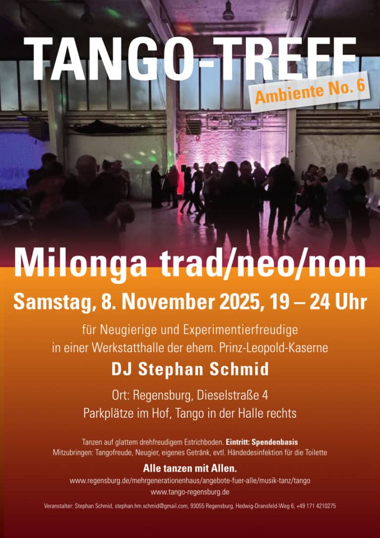 Nov. 30 18:00 - 22:00 Uhr TANGO-TREFF — Milonga trad./neo./non.– im MGH Ostengasse Regensburg Mehrgenerationenhaus
